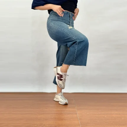 بلکه می‌توانید آن را در استایل‌های رسمی‌تر نیز با مانتو یا کت ست کنید. برش وایدلگ باعث می‌شود فرم پاها متعادل‌تر و کشیده‌تر دیده شود.