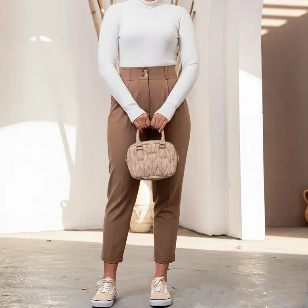 شلوار زنانه تک پیله با پارچه بزایاق ترک انتخابی شیک و کاربردی برای خانم هایی است که به دنبال شلواری خوش فرم، با کیفیت و مناسب استفاده روزمره و رسمی هستند. طراحی تک پیله این مدل باعث می شود استایل شما مرتب، کلاسیک و در عین حال به روز دیده شود.