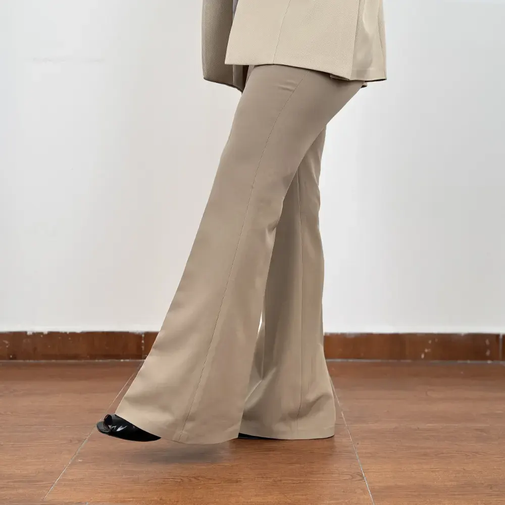 نقطه قوت اصلی این مدل، طراحی دمپای اسپانیش است. فرم دمپا باعث می شود پاها کشیده تر به نظر برسند و استایل شما جذاب تر و متعادل تر دیده شود. این ویژگی به خصوص وقتی با کفش پاشنه دار یا بوت ست شود، جلوه ای فوق العاده شیک و مجلسی ایجاد می کند.