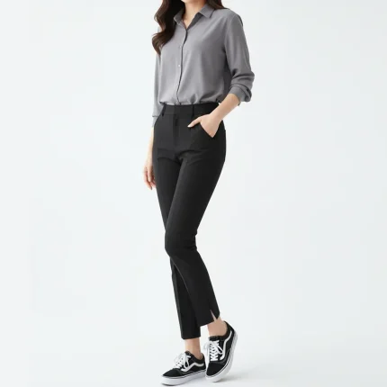 الگوی برش این شلوار به گونه ای طراحی شده که در عین راحتی، تنخور زیبایی داشته باشد. نه آنقدر جذب است که حرکت را محدود کند و نه آنقدر گشاد که فرم استایل را از بین ببرد. این تعادل باعث می شود برای استفاده طولانی مدت، محل کار، دانشگاه یا مهمانی، انتخابی کاربردی و مطمئن باشد.